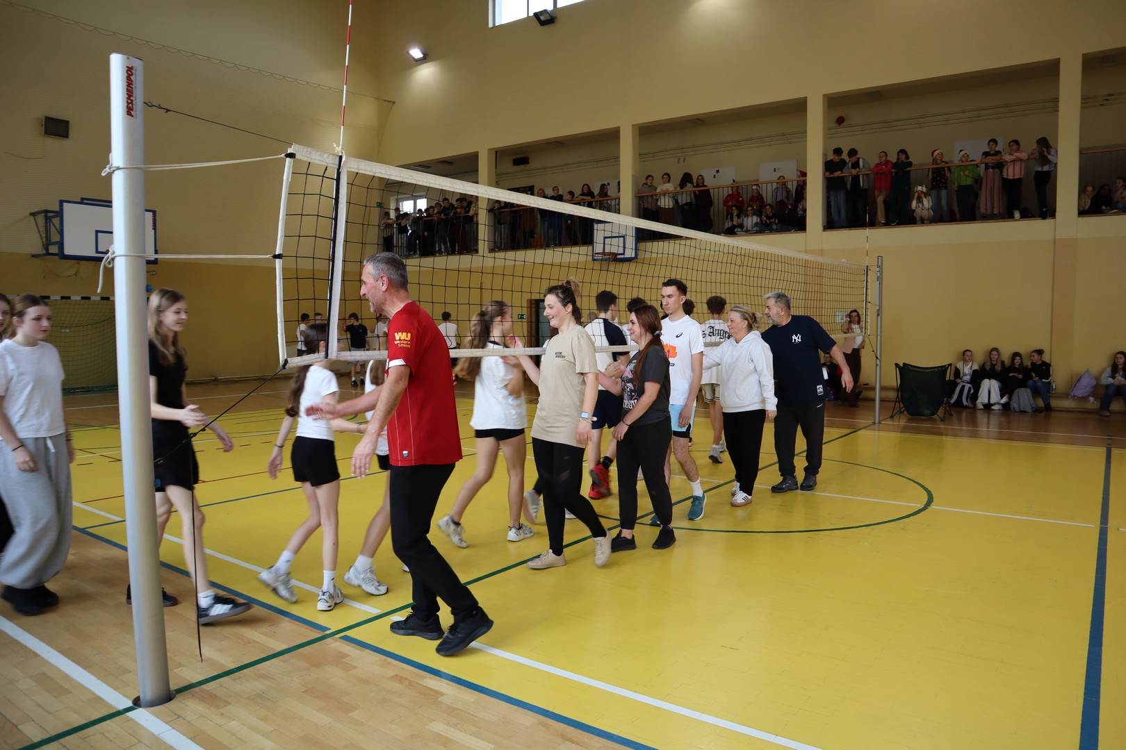 W piątek 05.12.2025 rozegraliśmy wyjątkowy, mikołajkowy mecz siatkówki: uczniowie VS nauczyciele. Emocji nie brakowało!